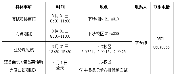 一志愿复试安排: