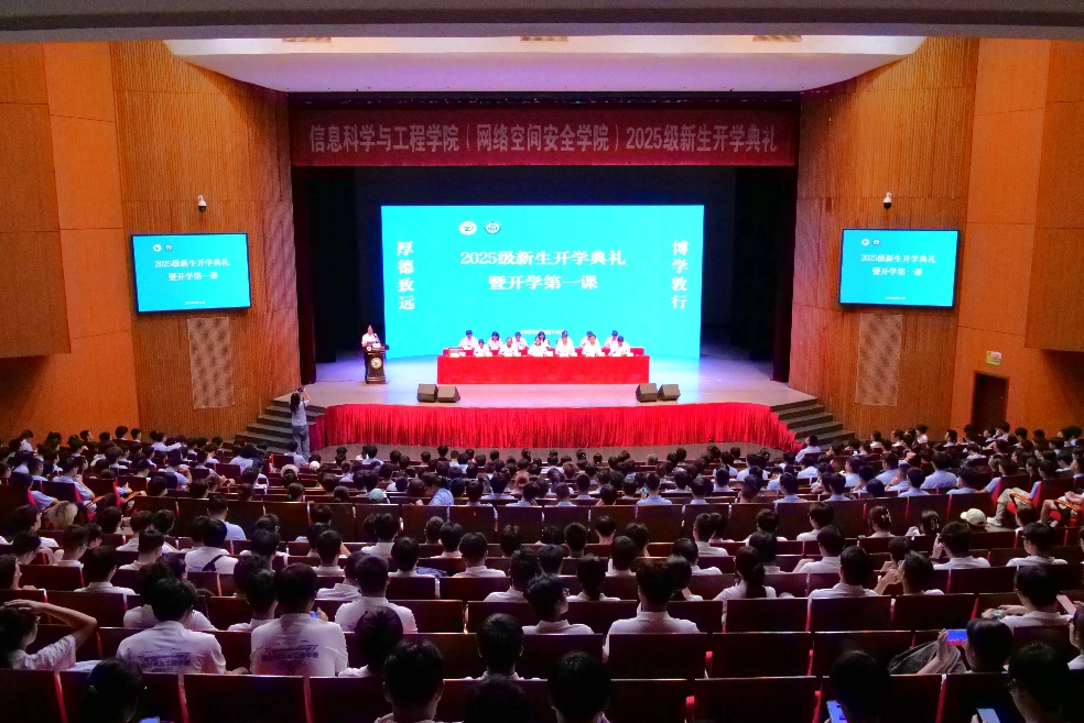 沈剑《勇立信息潮头,筑梦强国未来》为题向全体2025级新生讲授开学第一课。他带领学生重温9月3日隆重举行的纪念中国人民抗日战争暨世界反法西斯战争胜利80周年阅兵式,与其中的信息支援方队、电子对抗方队、网络空间作战方队等,指出信息类专业兼具服务国家的战略高度与支撑社会发展的民生厚度,在科学研究、前沿技术创新等方面也蕴含巨大的产业发展空间与个人成长广度。他介绍了学校与学院在学科平台、师资队伍、科研教学、人才培养等方面情况,勉励学生要立志高远、勇担使命,夯实基础、主动学习,开拓钻研、全面成才,励志成为能担重任、可堪大任的信息创新人才。