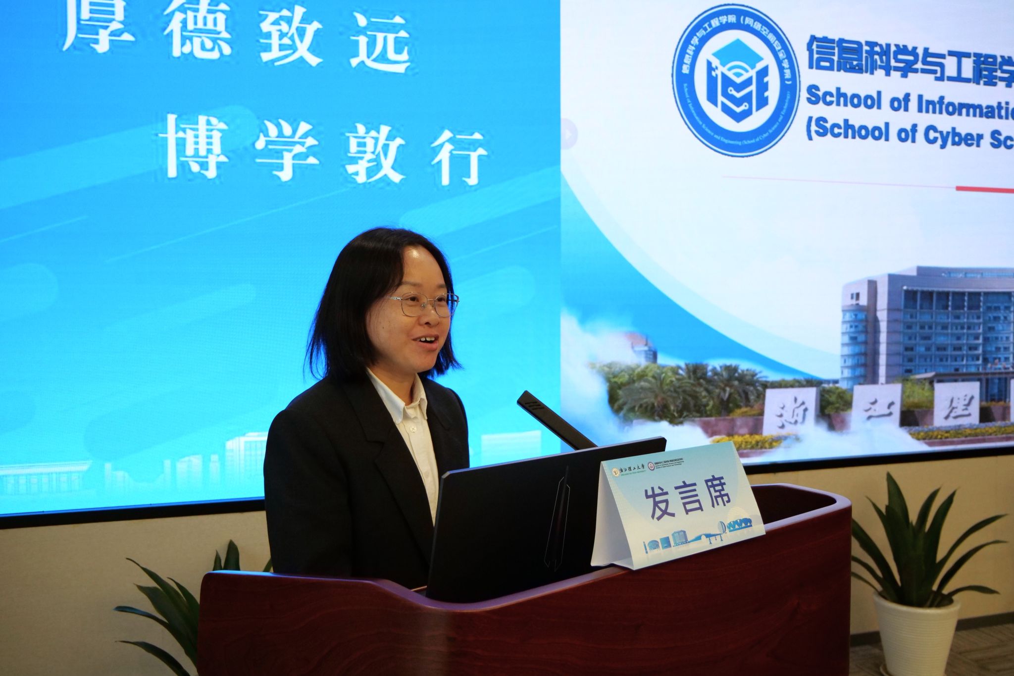 学院副院长高金凤从学科平台、师资队伍、科研成果、教学成果、人才培养等方面做学院介绍。