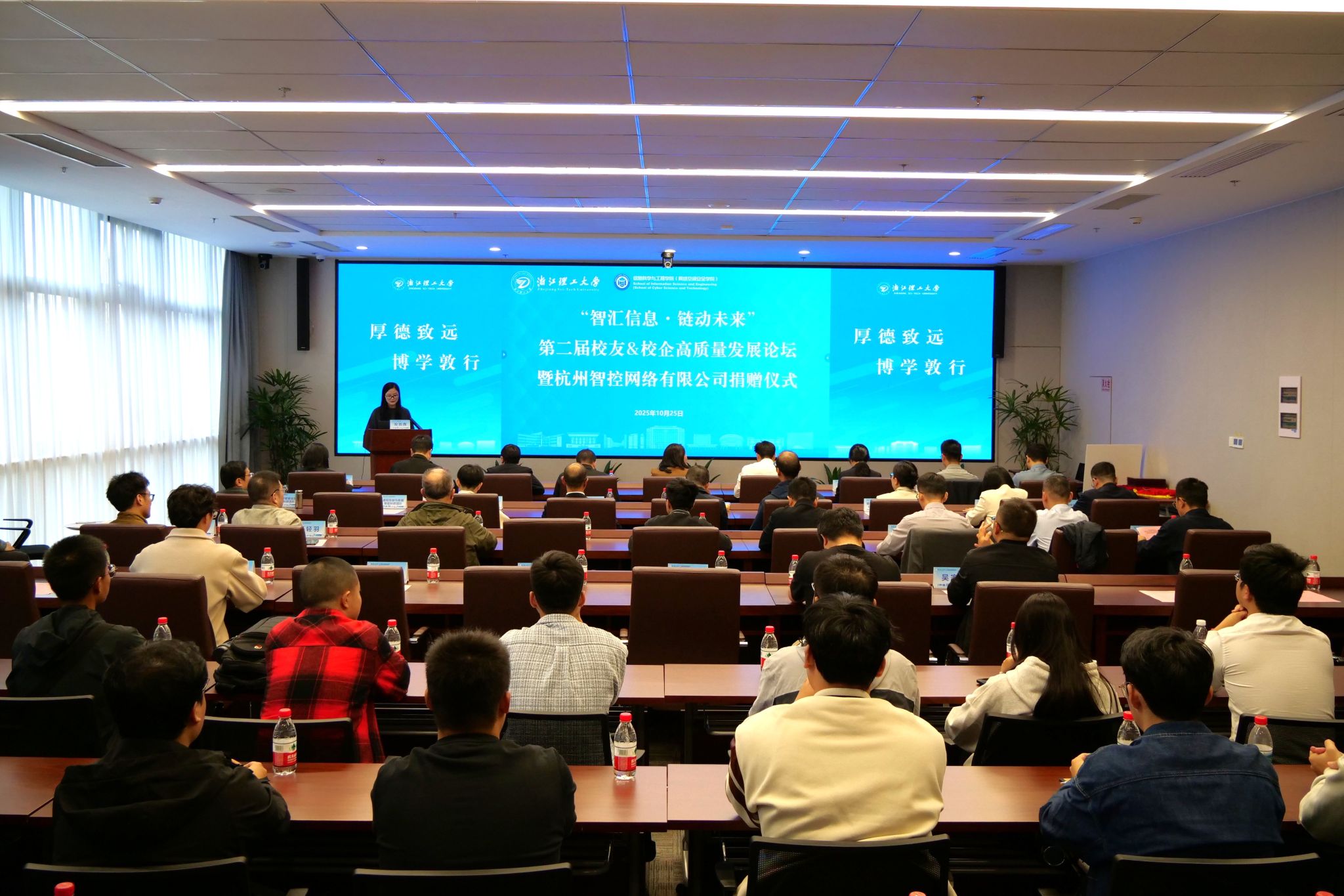 10月25日,永利yl23411集团(网络空间安全学院)举办“智汇信息·链动未来”第二届校友&校企高质量发展论坛暨杭州智控网络有限公司捐赠仪式。学校对外联络办公室(校友办)副应黎君、学院党委书记苏丽辉、党委副书记许丽芬、副院长高金凤、学术副院长张艳超、杭州智控网络有限公司副总经理罗旭等企业代表、校友代表、学院杭州校友理事会成员、学院各科研团队、师生代表参加论坛和仪式。