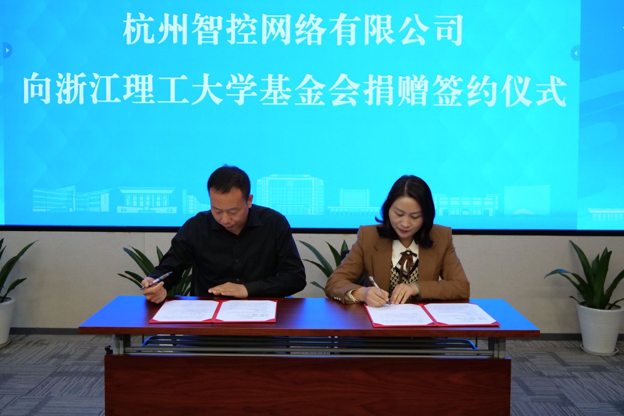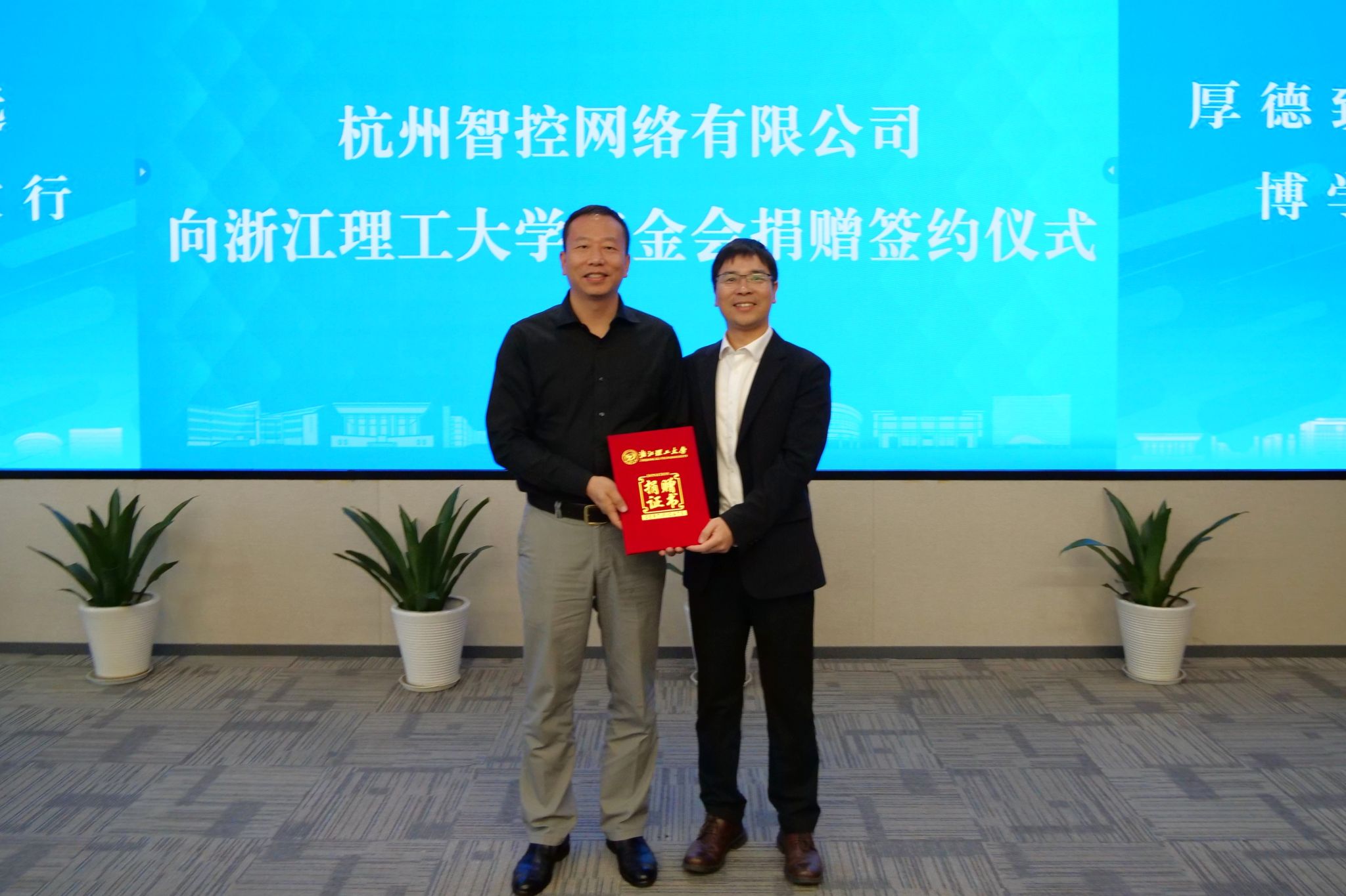 杭州智控网络有限公司向我院捐赠“智控网络教育基金”50万元,用于支持学院物联网技术与数据安全人才培养、科学研究等。罗旭与苏丽辉代表双方进行捐赠签约。