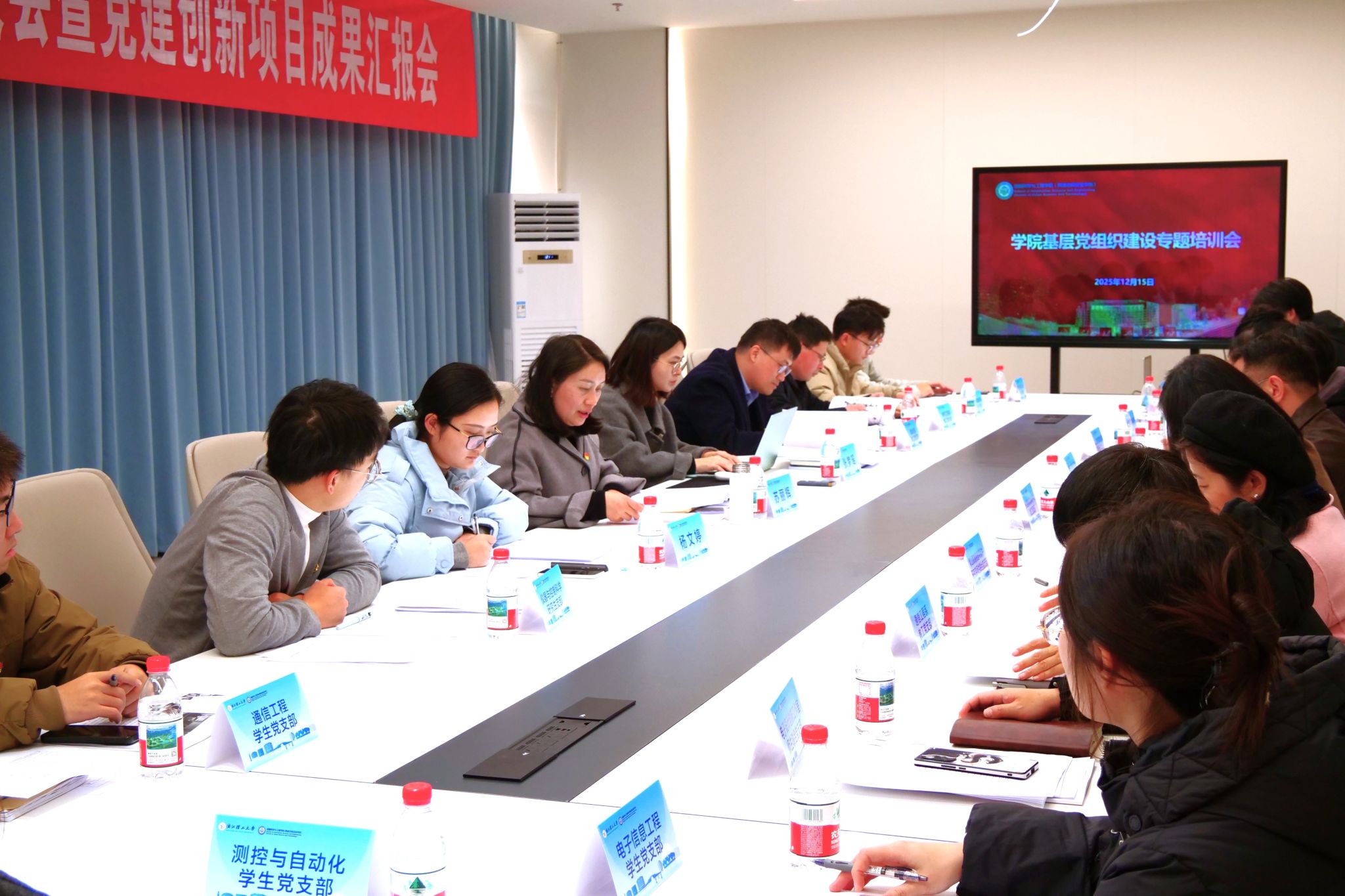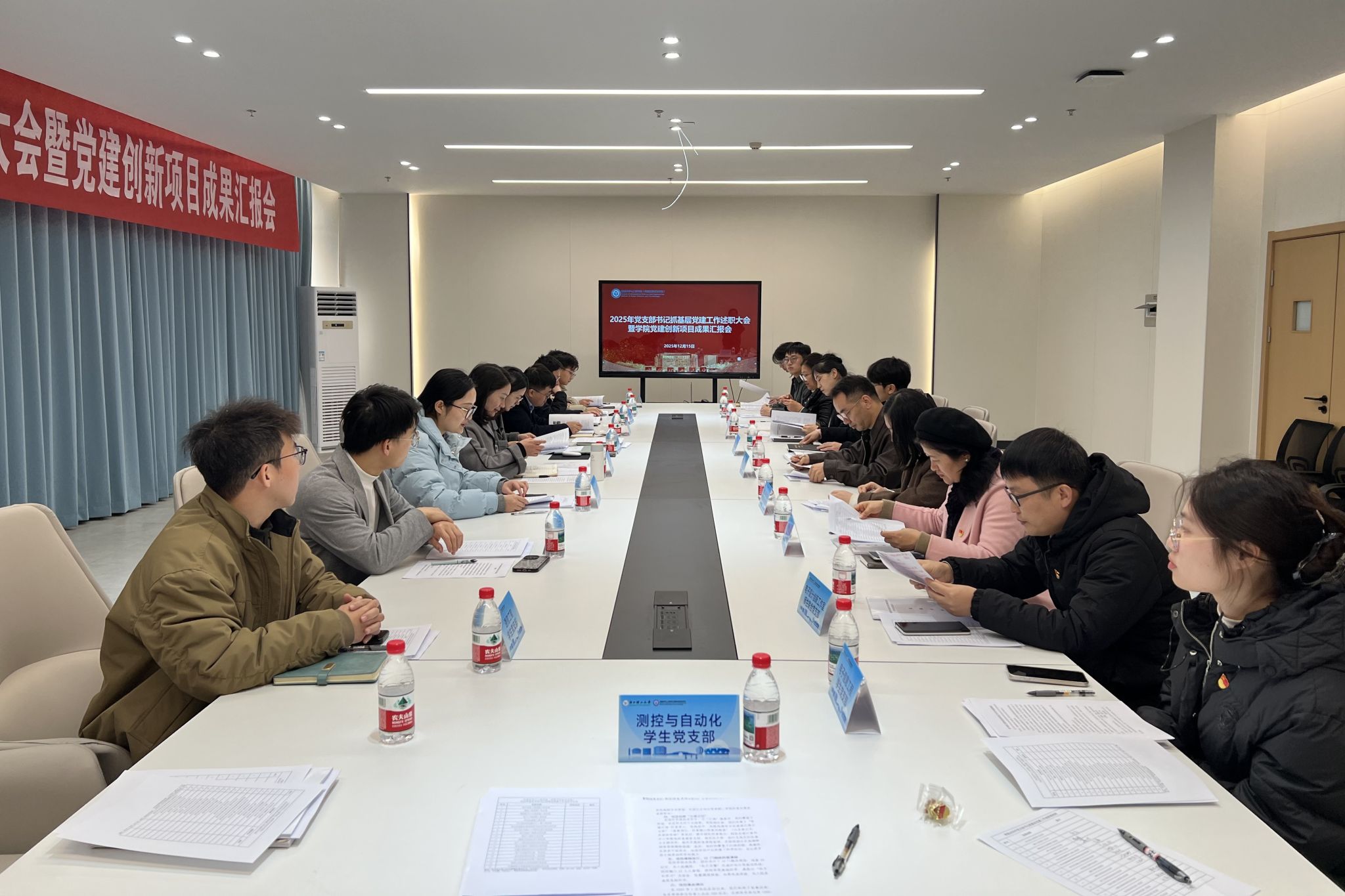 12月15日,学院举行2025年度党支部书记抓基层党建工作述职大会暨学院党建创新项目成果汇报会,并开展基层党组织建设专题培训会。学院党委书记苏丽辉出席会议。学院各基层党支部负责人参加。会议由兼职组织员杨文婷主持。
