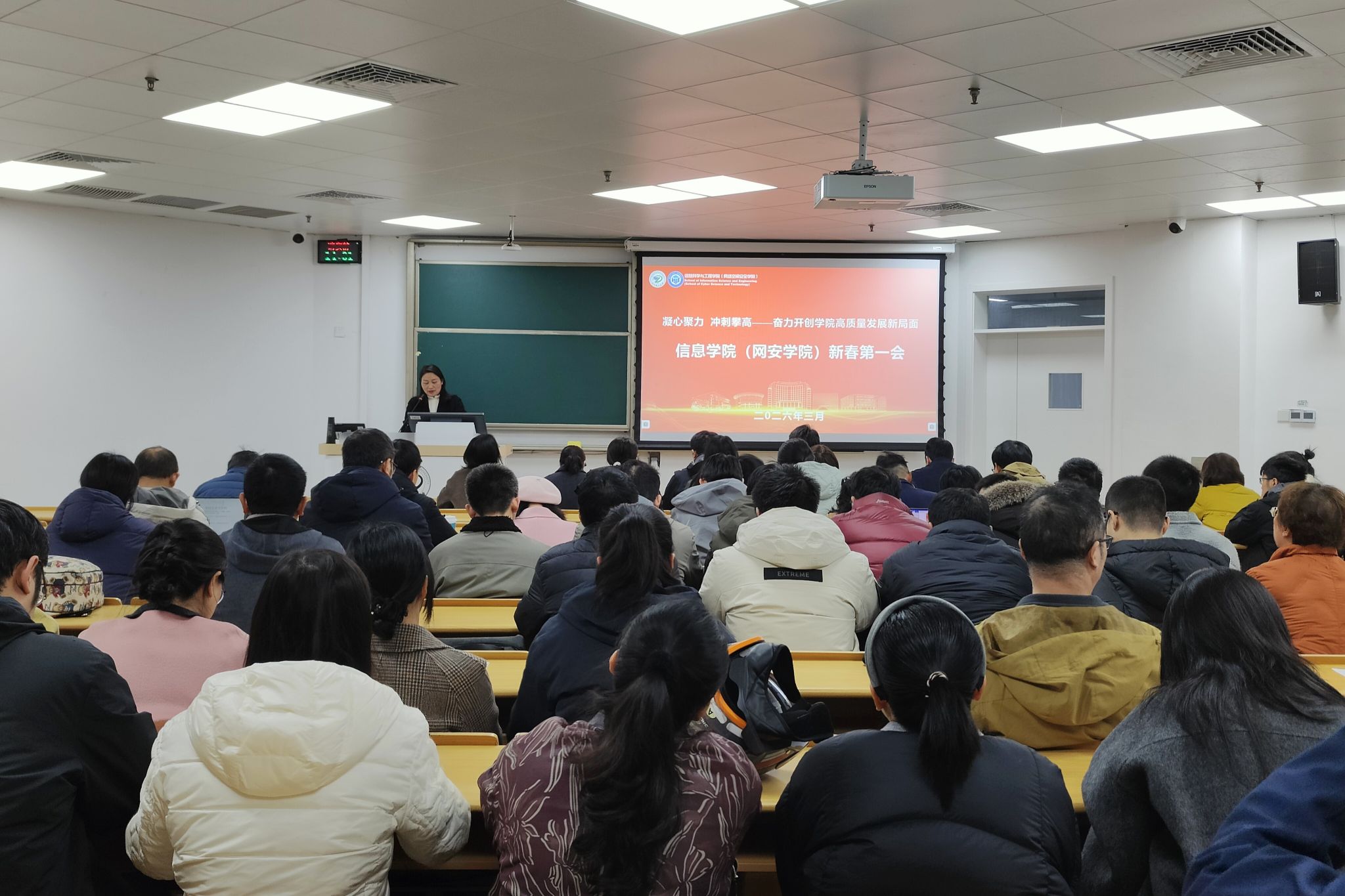 3月1日下午,永利yl23411集团(网络空间安全学院)以“凝心聚力 冲刺攀高——奋力开创学院高质量发展新局面”为主题召开2026年新春第一会。学院党政领导班子成员、全体教职工参加会议。会议由学院党委书记苏丽辉主持。